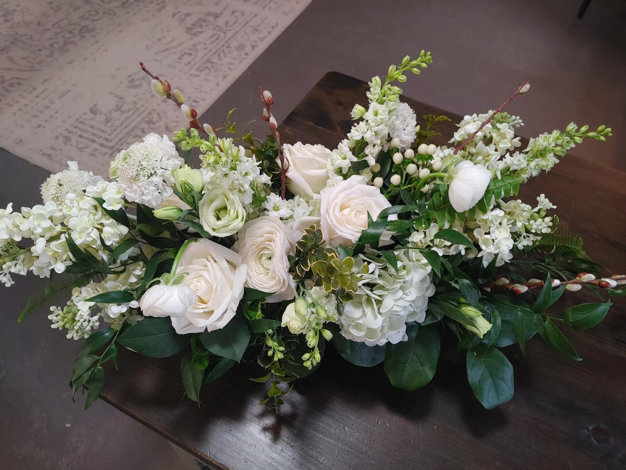 Please put notes on specifics for ordering. Colour palette, size of arrangement and whether you want it low and long or with some height and in a vase. Any questions, please email.